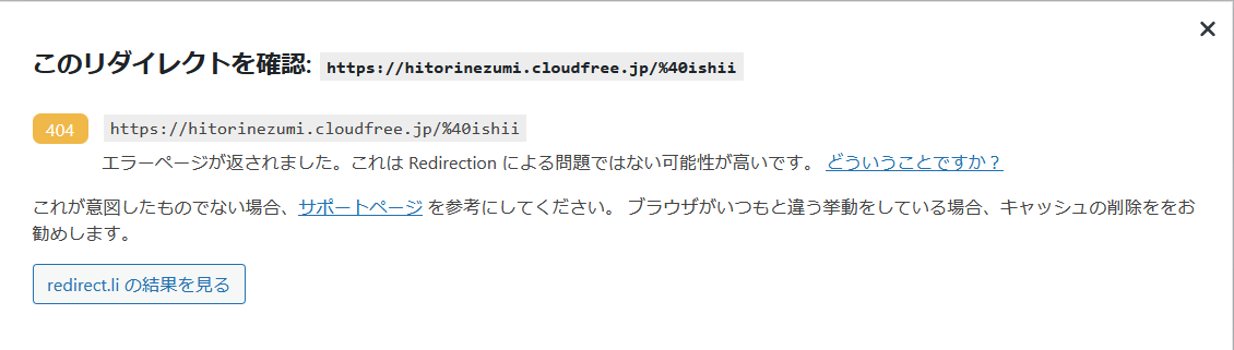 プラグイン #Redirection を使っても「/ishii」から「/wp/ishii/」へや「/hitorinezumi」から「/wp/hitorinezumi/」へのリダイレクト設定で、リダイレクトせずに404エラーになった。