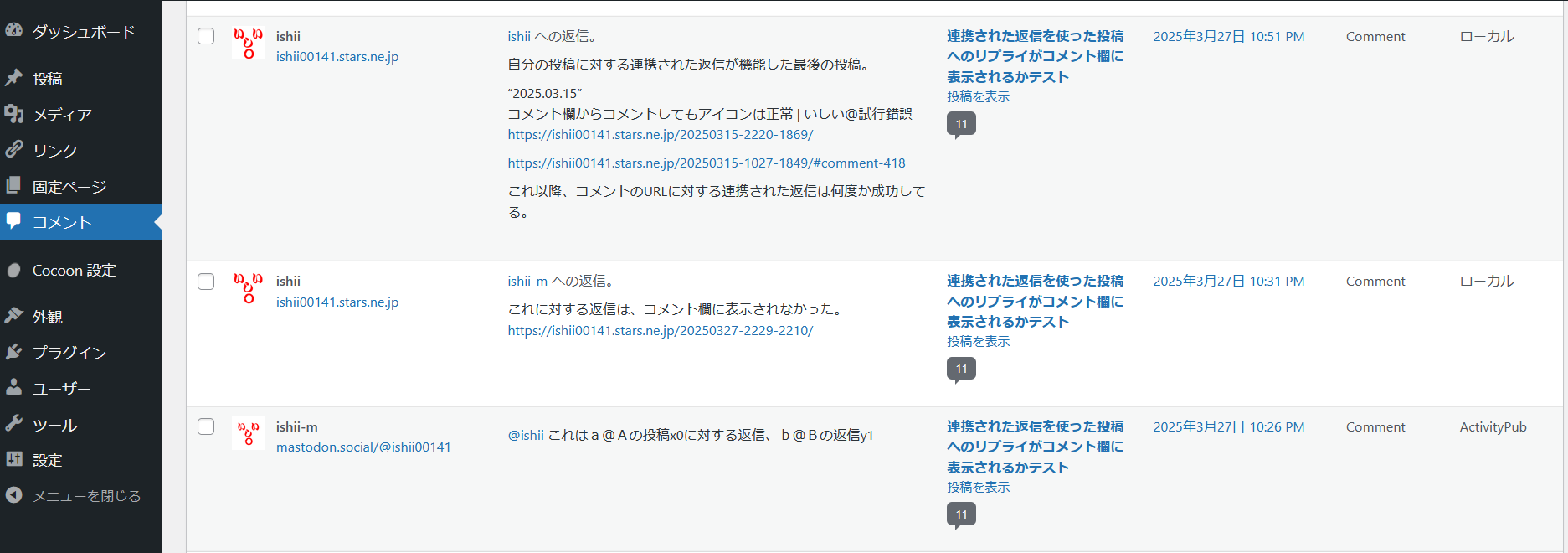 連携された返信を使った投稿へのリプライがコメント欄に表示されるかテスト | いしい@試行錯誤