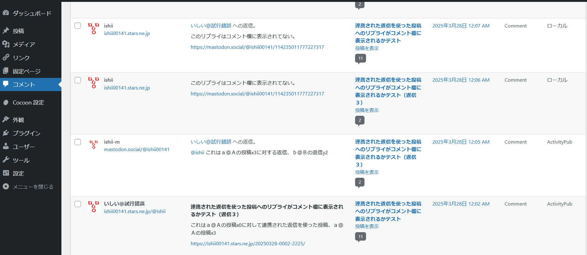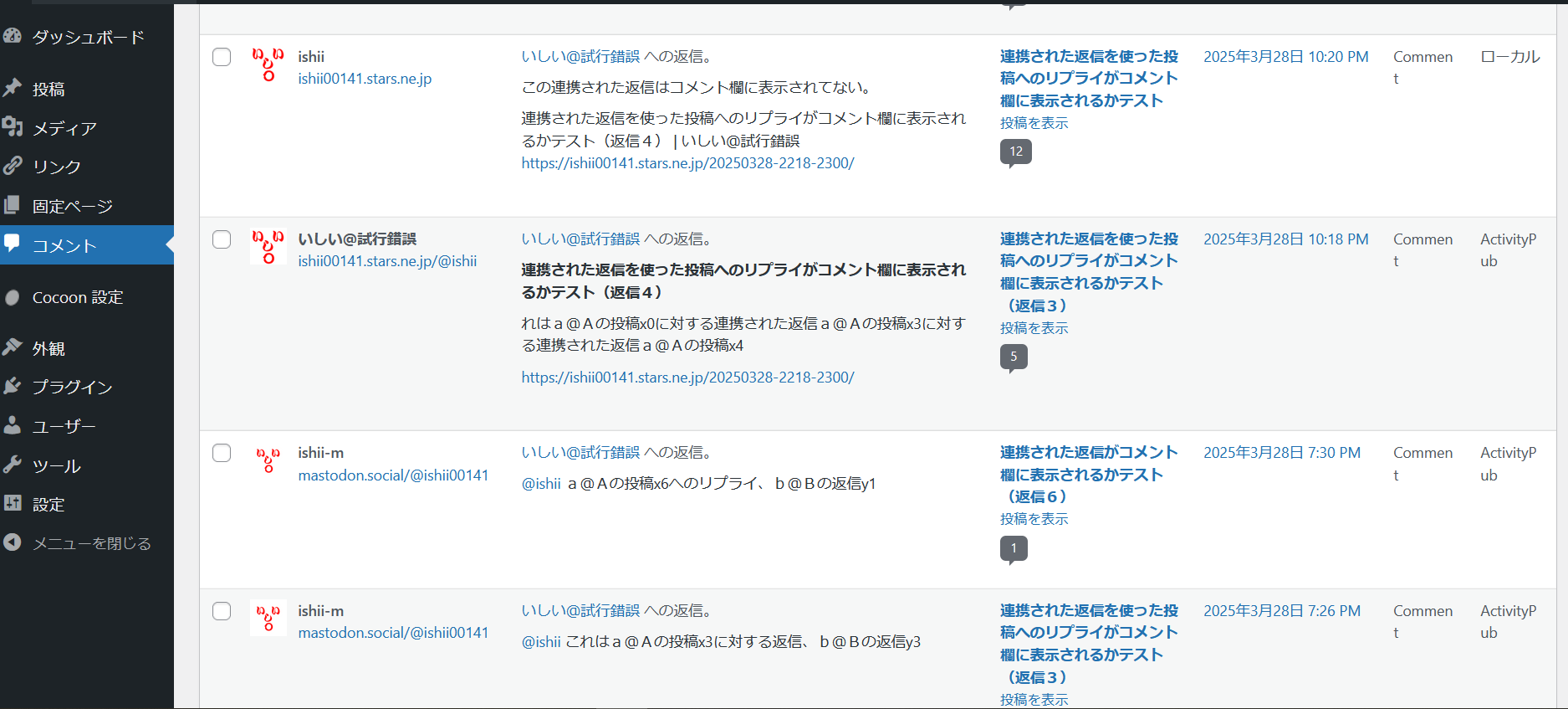 Fediverseからのリプライが即座にコメント欄に表示されるかテスト | いしい@試行錯誤