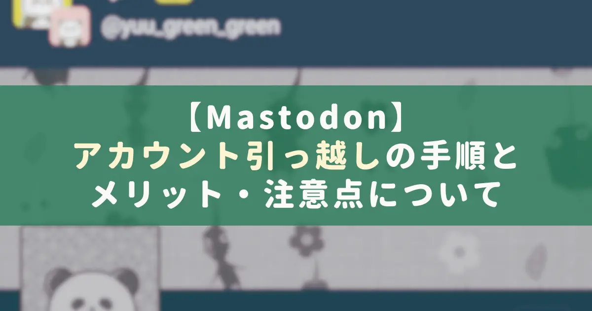Mastodonアカウントの引っ越し(移転)機能のメリット・デメリットとやり方について画像多めでまとめました。Misskeyのアカウント引っ越し機能についても少し紹介。